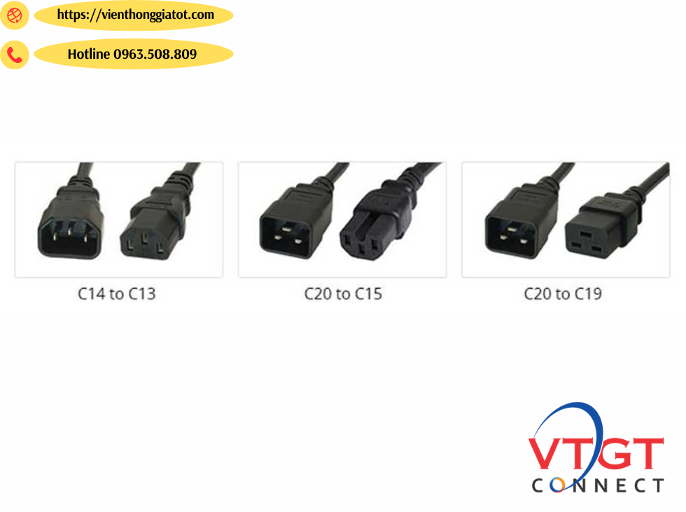 Dây nguồn phổ biến: C14 to C13, C20 to C19, C14 to C15, C20 to C15