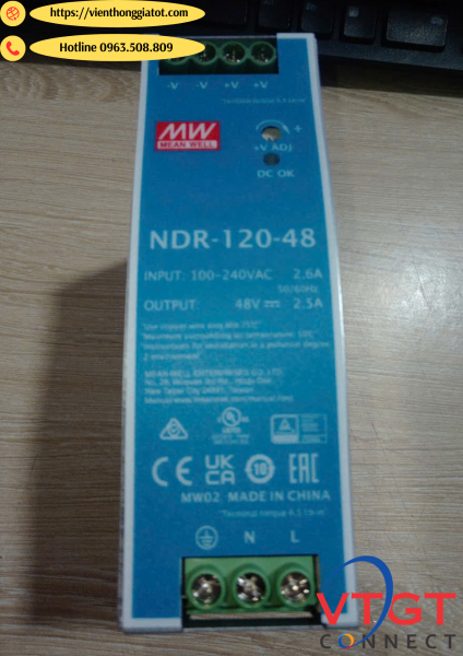 Bộ nguồn này hỗ trợ lắp đặt trên thanh DIN rail, tương thích với nhiều loại tủ điện công nghiệp, giúp triển khai nhanh chóng, gọn gàng và an toàn.